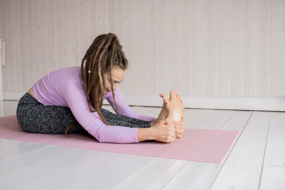 PDF resources detail the benefits: stretching the spine, hamstrings, and groins, while strengthening the legs and core. They also highlight the pose’s ability to relieve stress and improve digestion.